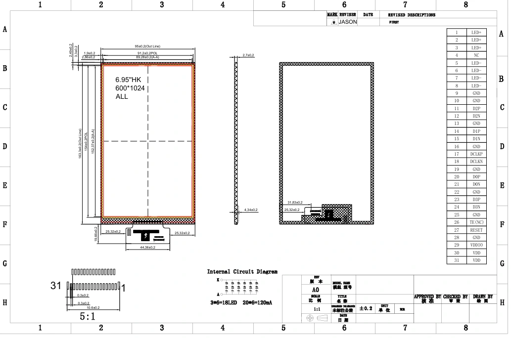 6.95 IPS Ard-Réiteach IPS TFT LCD Scáileán Tá taispeántas LCD 6.95-orlach TFT le réiteach ard de 600 x RGB x 1024 picteilín, gile ard de 350 CD/m², agus cóimheas ard codarsnachta de 700: 1. In éineacht le teicneolaíocht taispeána uillinne iomlán, seachadann modúl scáileáin IPS TFT LCD 6.95-orlach íomhánna soiléire agus geal ó aon uillinn. Baineann sé úsáid as comhéadan MIPI ardluais le haghaidh tarchur cobhsaí agus éifeachtach, tacaíonn sé le raon teochta oibriúcháin leathan -10 ° C go 60 ° C, agus tá sé an -iontaofa, rud a chiallaíonn go bhfuil sé oiriúnach do riachtanais na bhfeistí cliste éagsúla.