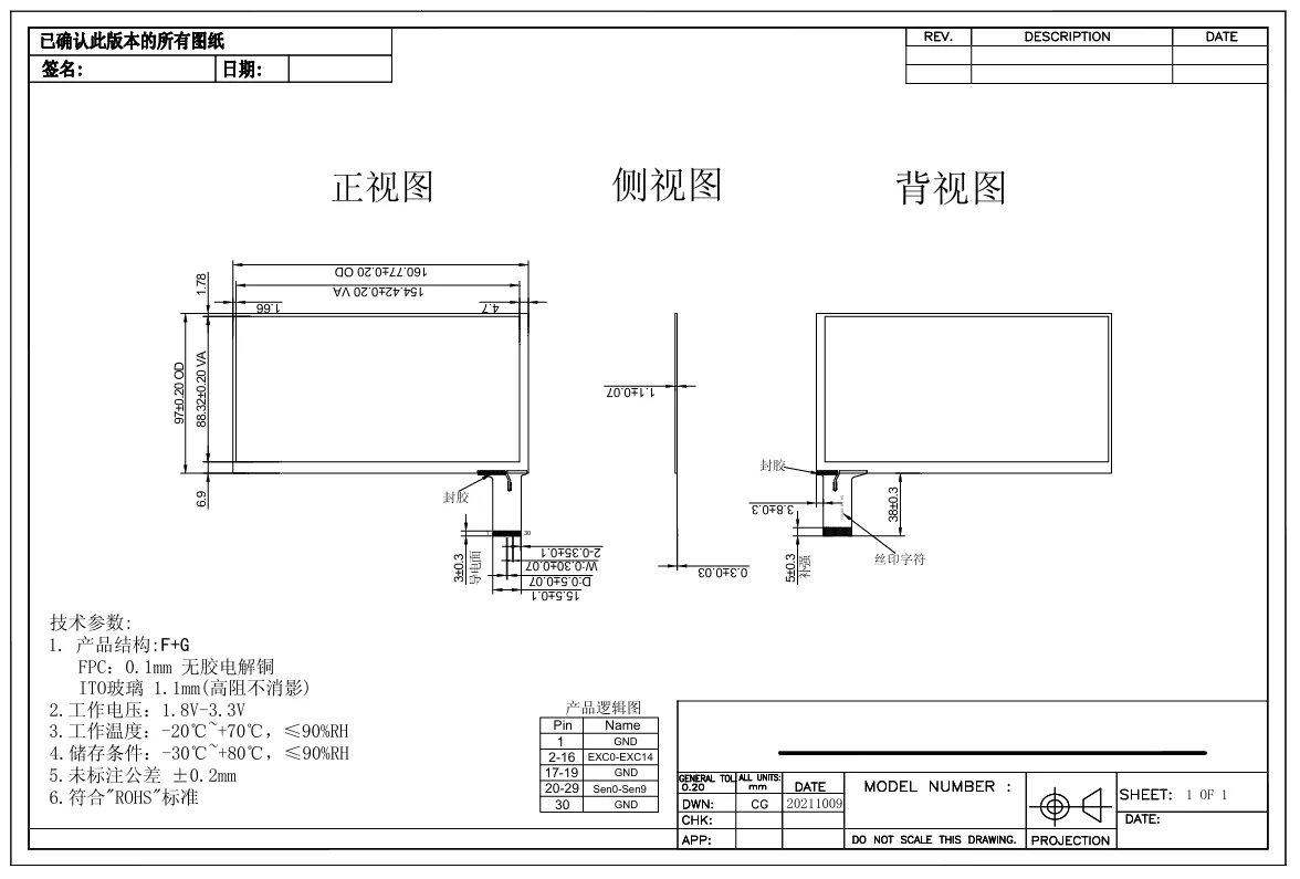 97.00 × 160.77 × 1.10 mm (Imlíne Braiteoir; Caoinfhulaingt: ±0.20 mm)